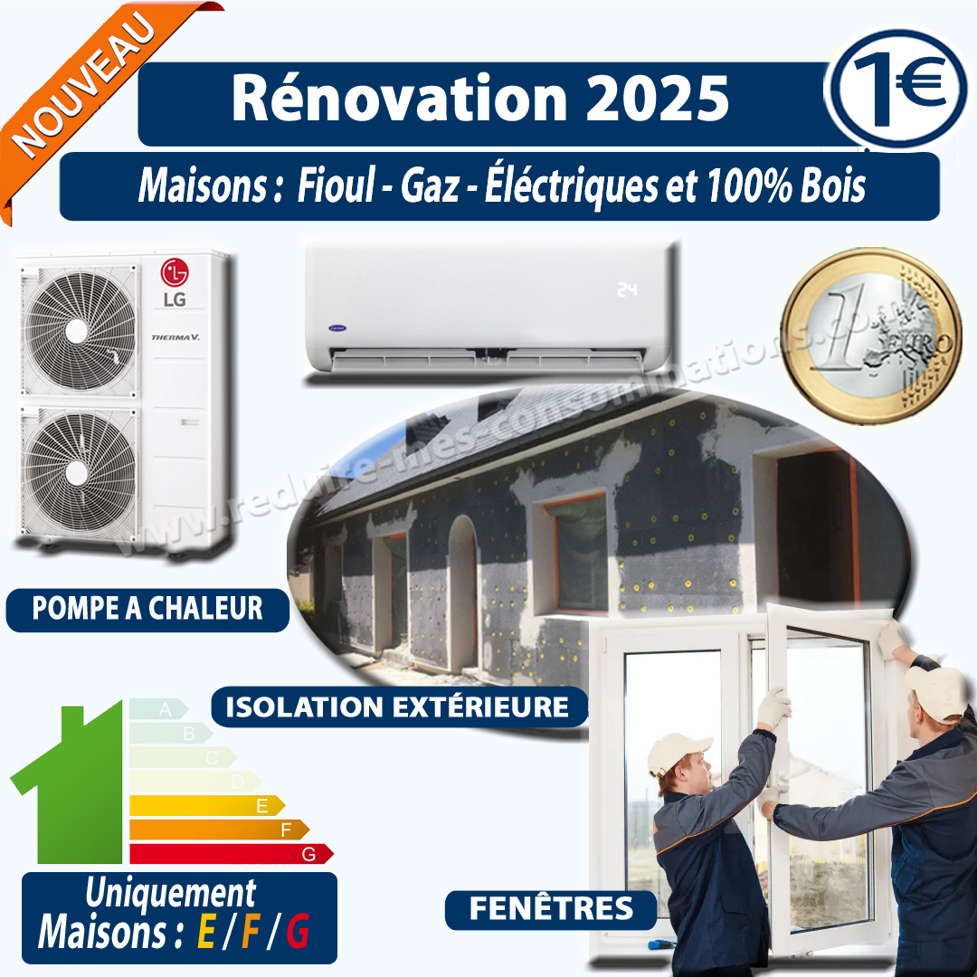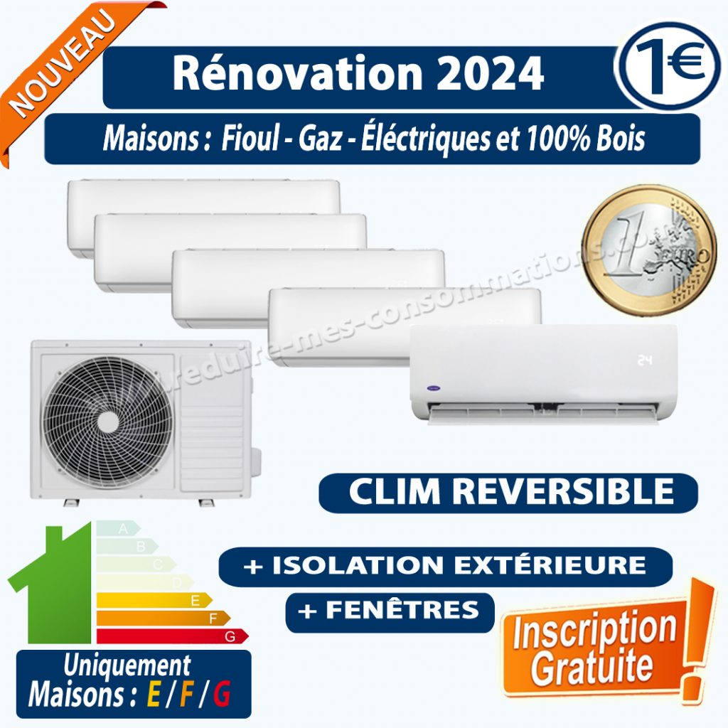 - installation d’un chauffage climatisation réversible ou une pompe à chaleur Air/Eau